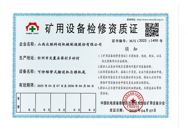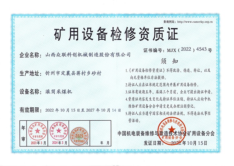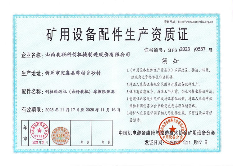 礦用(yong)設備配(pei)件生產資(zi)質證