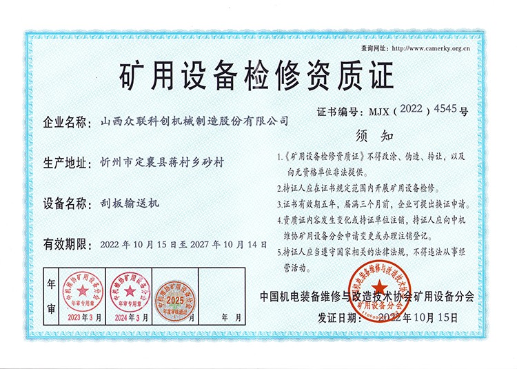 礦用設備(bei)配件(jian)生(sheng)產資(zi)質(zhi)證(zheng)